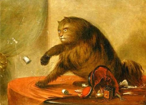 I noticed in the museum that earlier artists for some reason had trouble with drawing cats. There were constant blunders with the anatomy. With dogs, things were more or less okay, swans and other game they painted very accurately (well, because you can spread it out on the table for a whole day), but a cat, obviously, won’t stay still on a table for long, and it seems they drew them “from imagination.” And their imagination, it seems, was based on medieval depictions of cats, where there was complete chaos — cats were portrayed almost with human faces, with eyebrows and expressions.