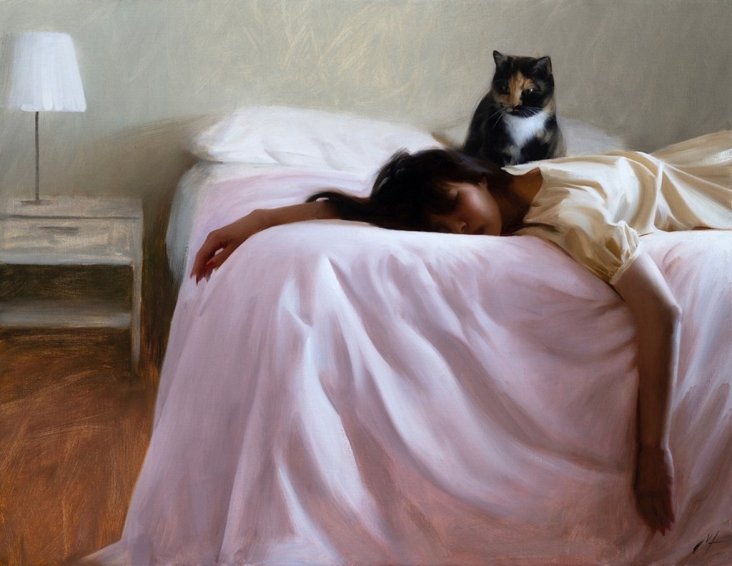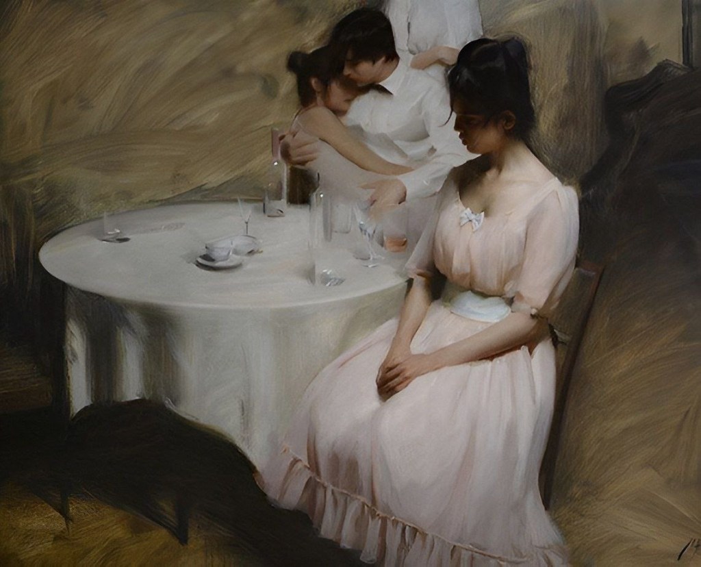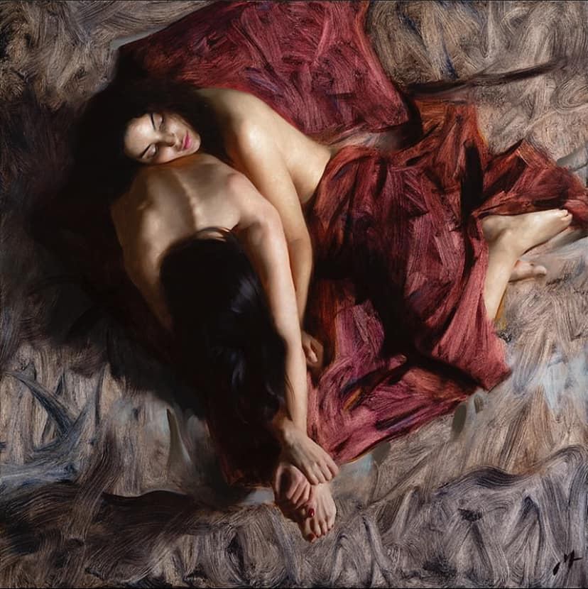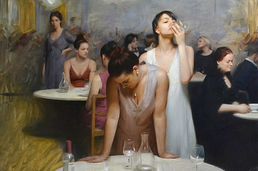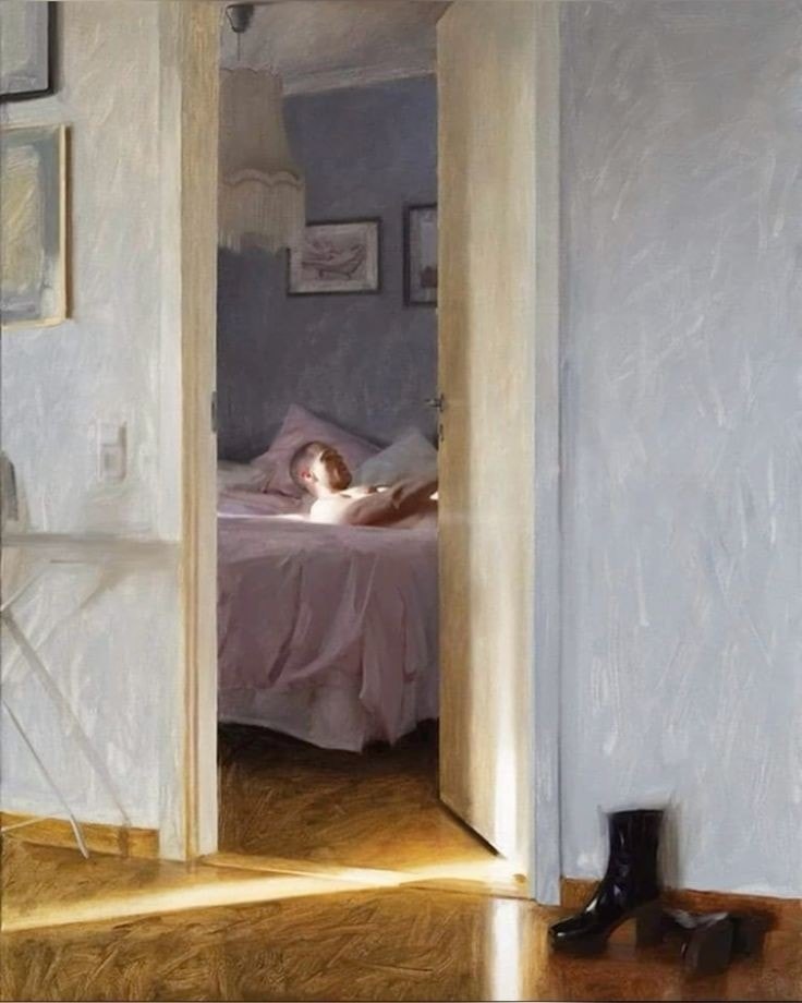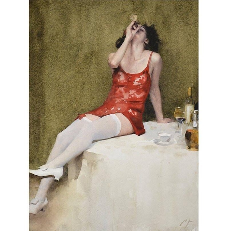Nick Alm, a promising young artist from Sweden, paints women lost in moments of indulgence: sipping, smoking, or caught in mysterious, enigmatic scenes. Sometimes, it’s the artist himself who seems to be drifting into the smoke. Despite these often unconventional subjects, his paintings possess an undeniable magic. I could have easily shared hundreds more! His technique is a captivating. Oils and watercolors.